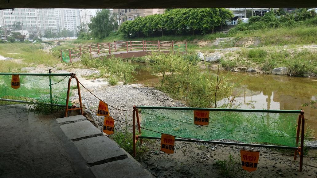 천변이 우천시 범람하여 지하인도를 사용할 수 없고 불편속에 우회함을 확인했습니다.