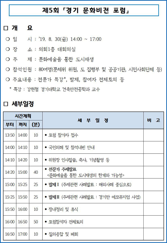 제목: 제5회 경기 문화비전 포럼 - 문화예술을 통한 도시재생