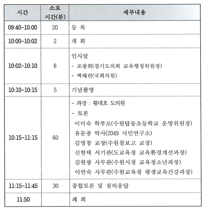 제목: ‘지역주민과 함께하는 학생 학습권 보장을 위한 토론회’