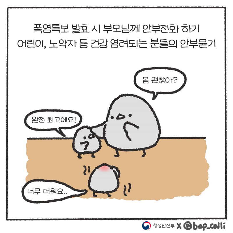 온열질환 등 폭염으로 인한 피해를 예방하고, 안전한 여름나기를 위한 폭염 국민행동요령 및 취약분야 행동요령 등을 안내드리오니 참고하시기 바라며,개인 및 각 사업장에서 널리 활용하시기 바랍니다.