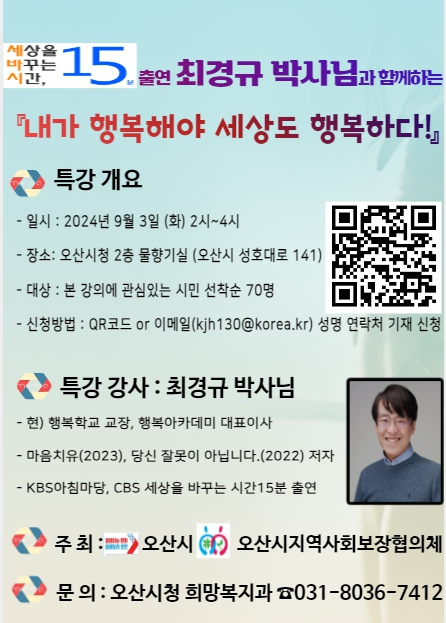 최경규 박사님과 함께하는 특강 『내가 행복해야 세상도 행복하다!』(9.3)