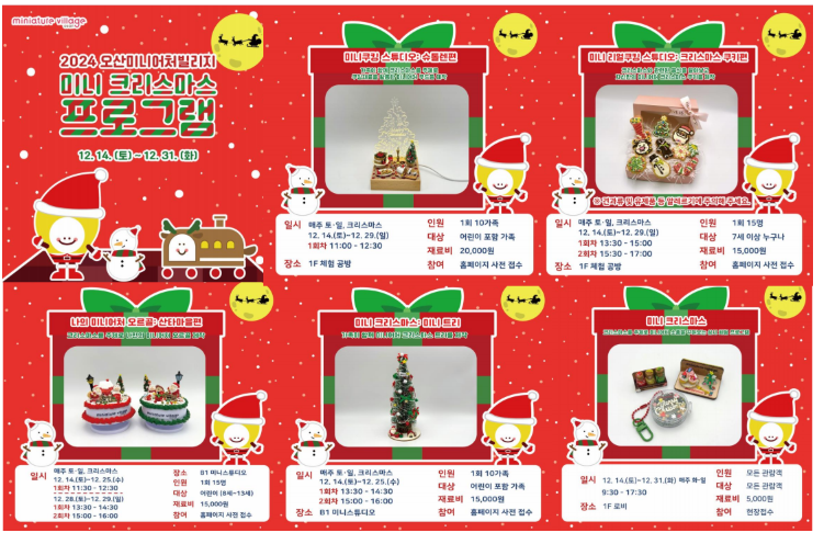 즐거운 성탄절을 맞이하여 다양한 미니어처 문화를 경험할 수 있는 다양한 특별프로그램과 이벤트를 준비했습니다. 많은 관심과 참여 부탁드립니다.