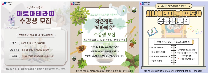 ★2024학년도 겨울학기 <테라리움, 아로마테라피, 시니어인지(치매예방) 프로그램 추가모집 중이니 많은 참여와 관심 바랍니다!