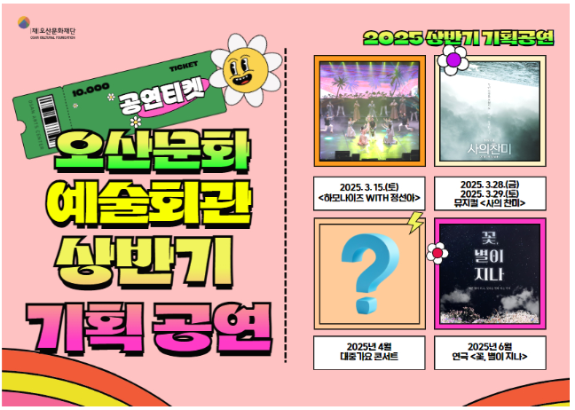2025년 4월, 오산문화예술회관에서 대중공연을 개최하고자 합니다.