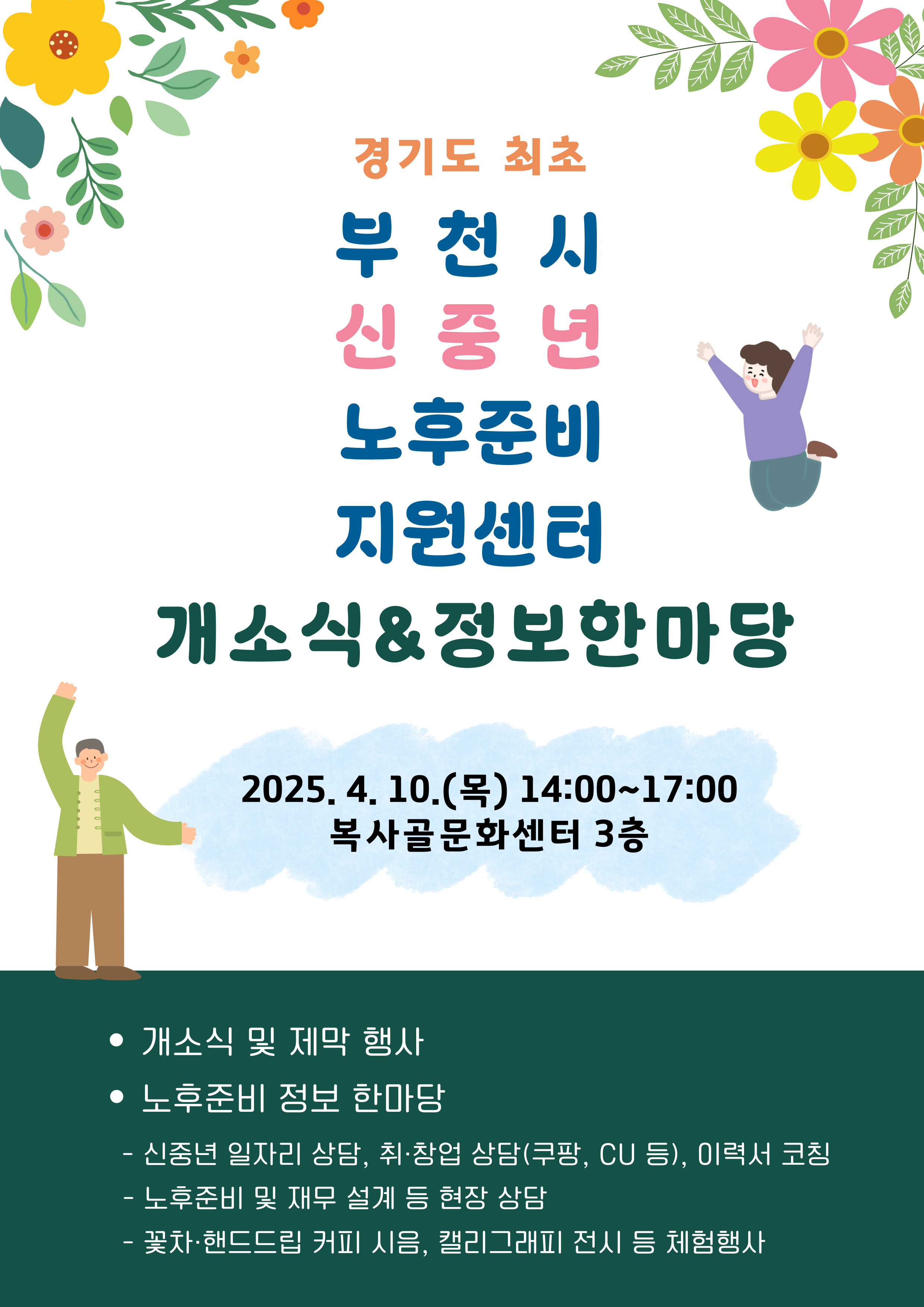 경기도 최초 지역노후준비지원센터, 「부천시 신중년 노후준비지원센터」가 개소합니다.