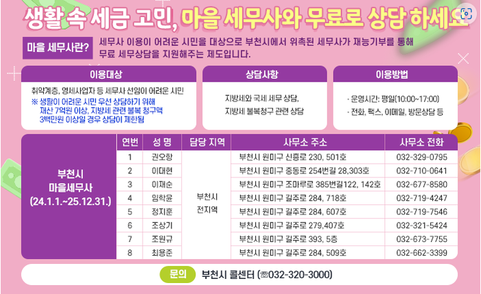 생활속 세금. 부천시 마을 세무사와 상담하세요.