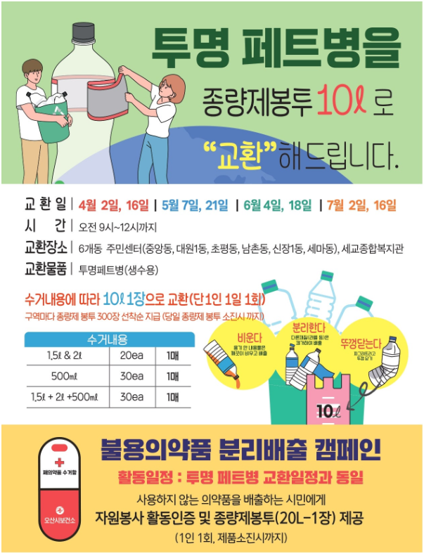 [오산시] 투명 페트병 모아오고 종량제봉투 받아가세요!