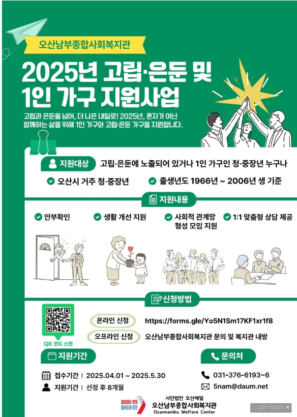 오산시 1인가구 프로그램 참여자를 모집합니다(참여비 무료)
