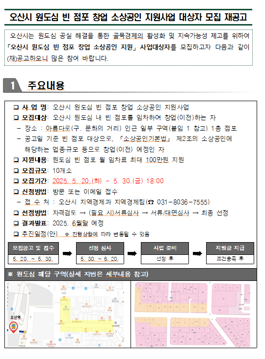 오산시 원도심 빈 점포 창업 소상공인 지원사업 대상자 모집 재공고