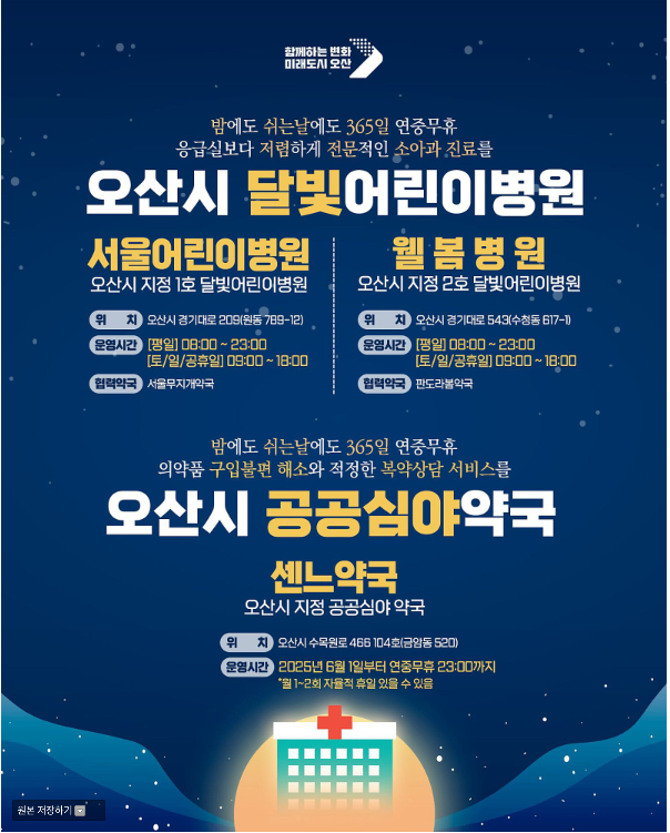 [오산시] 달빛어린이병원 / 공공심야약국 안내(연중무휴,심야운영)