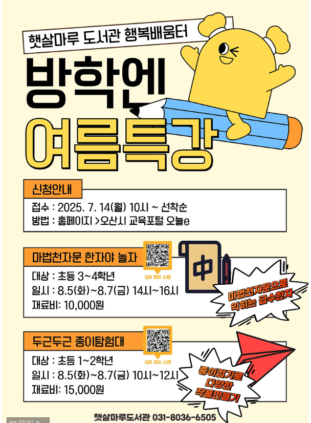 [오산아이드림센터] 여름방학 운영시간 안내