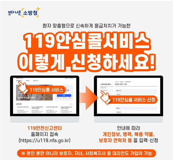 위급 상황 시 환자 맞춤형 응급처치와 병원 이송이 가능한 119안심콜서비스, 이렇게 신청하세요! ??