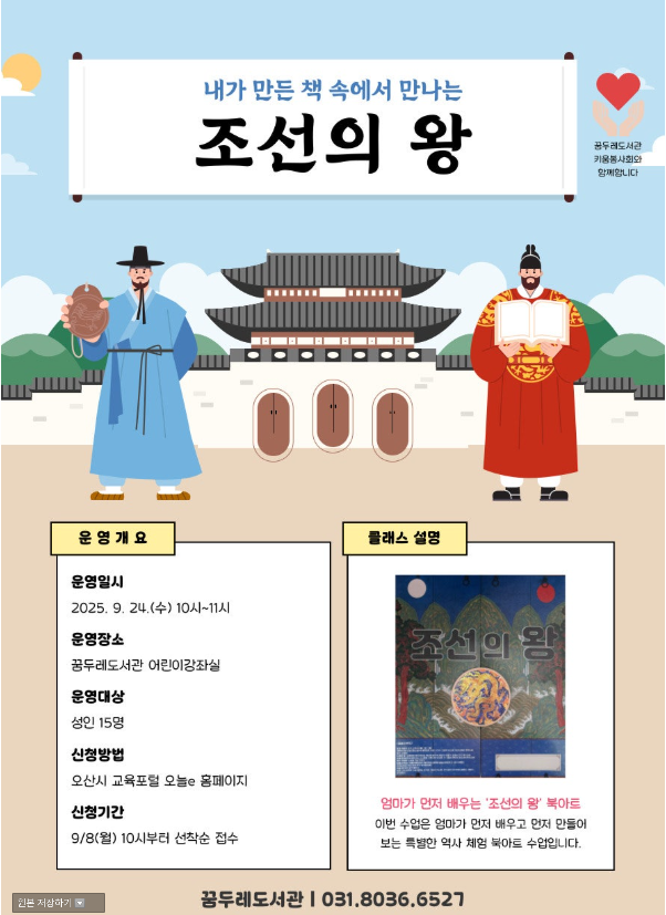 [꿈두레도서관]「내가 만든 책 속에서 만나는 조선의 왕」 수강생 모집 안내