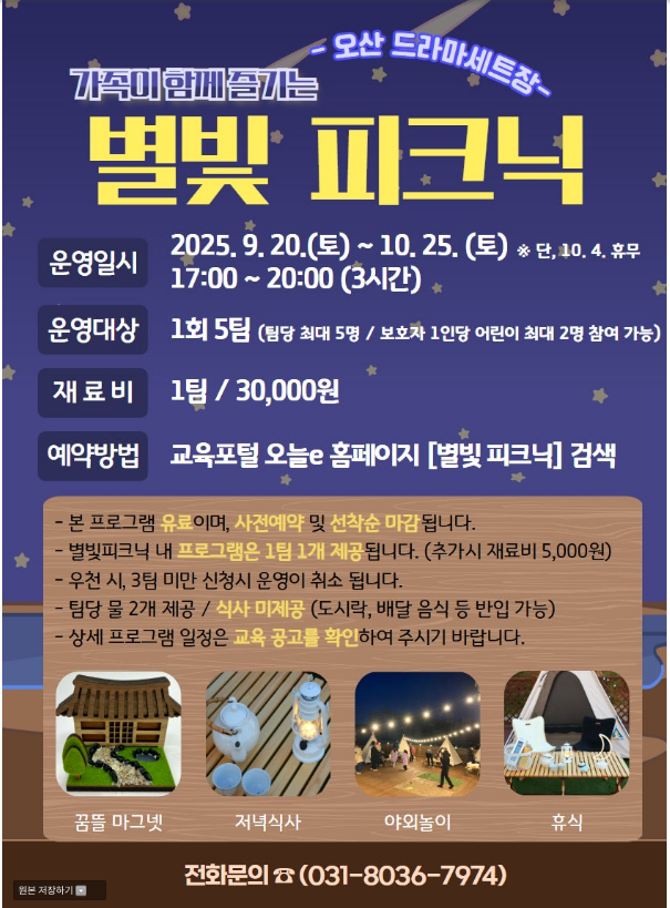 [어서오산 휴센터] 별빛 피크닉 운영 안내