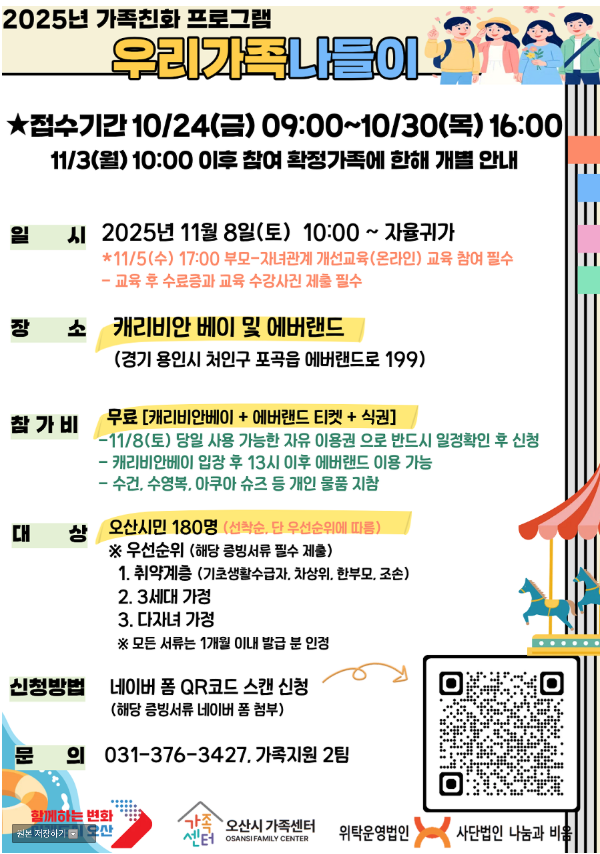 [오산시가족센터] 2025년 가족친화문화 프로그램 우리가족나들이 참여자 모집