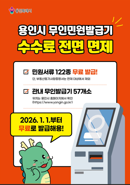 <무인민원발급기 수수료 전면 면제 시행 안내>