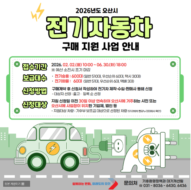 2026년도 오산시 전기자동차 구매지원 안내