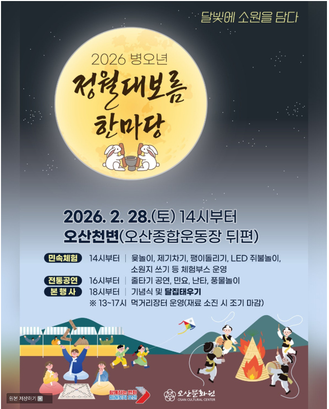 [오산시] 2026 병오년 정월대보름 한마당 안내(2. 28.)
