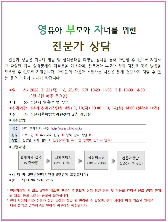 [오산시육아종합지원센터] 전문가 상담 잔여석 신청 안내