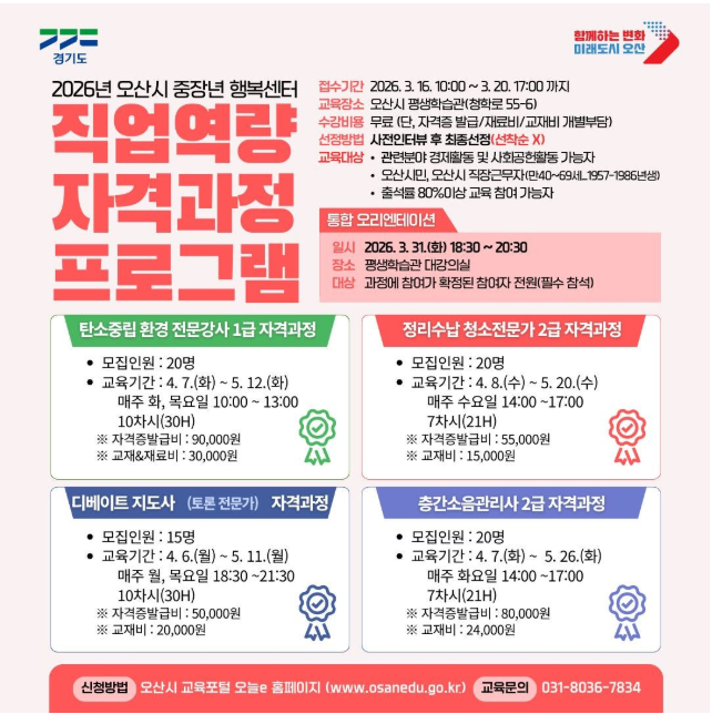 [오산시] 2026 중장년 행복센터 수강생 모집