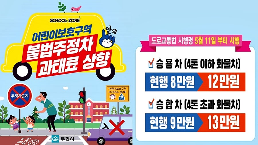 부천시에서도 어린이보호구역 내 주정차 위반 차량에 대한