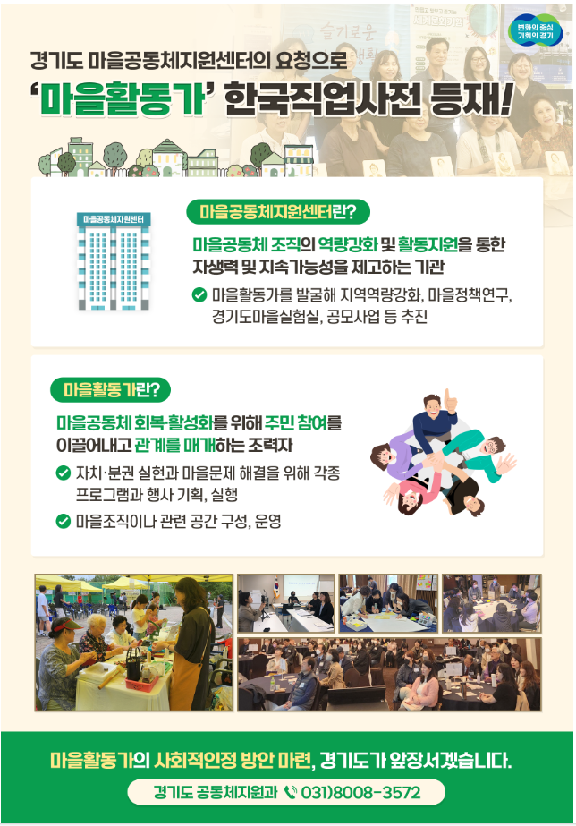 마을공동체 회복·활성화를 위한 마을활동가, 이제는 당당한 직업입니다.