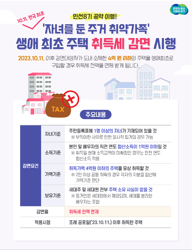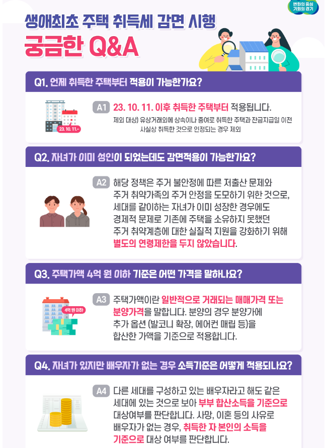 경기도, ‘유자녀 주거 취약가족’ 생애최초 주택 취득세 감면 혜택