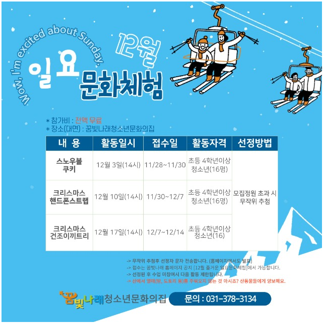 [꿈빛나래청소년문화의집] 12월 즐거운 일요일 문화체험활동 안내