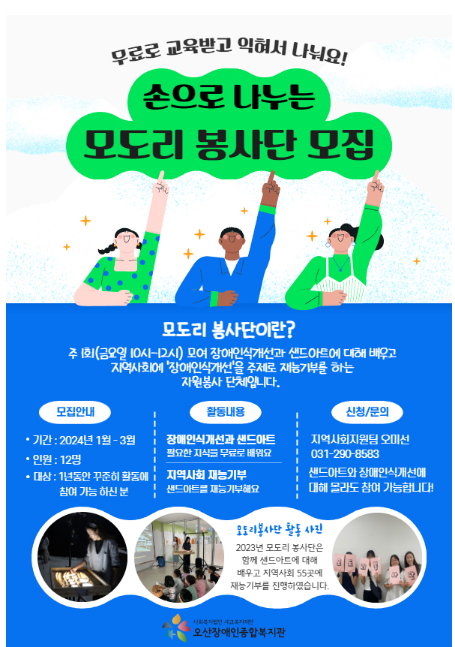 2024년 "손으로 나누는 모도리봉사단" 자원봉사자 모집