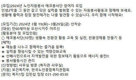 선배시민(에코노인자원봉사단),(스마트폰노인자원봉사단) 참여자 모집