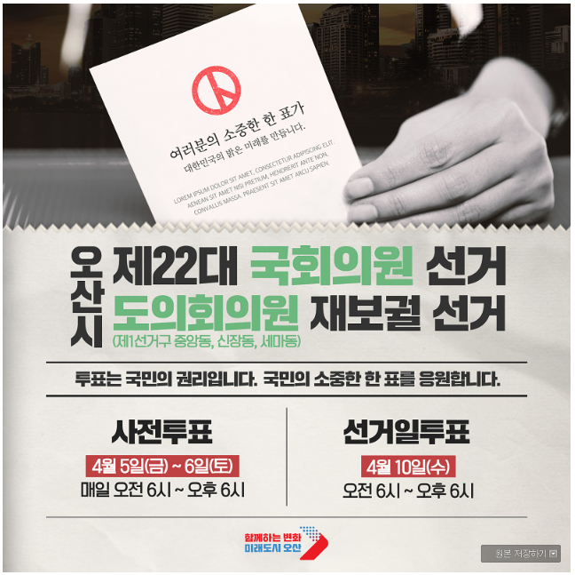 오산시 제22대 국회의원 선거 / 도의회의원 재보궐 선거 안내