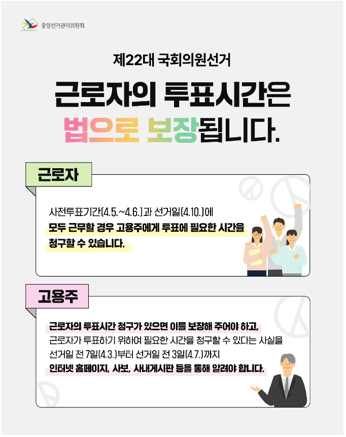 제22대 국회의원선거 근로자 투표시간 보장 안내